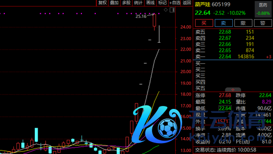 漳州发展11月25日至12月4日涨幅达到98%,本日开盘一字跌停,卖盘封单跳动58万手。葫芦娃则在竞价阶段跌停,开盘跌幅收窄至5%以内,不外很快封死跌停。
