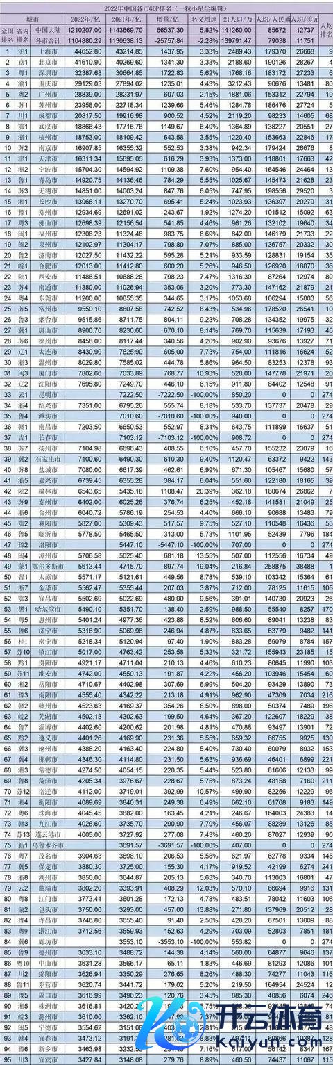 2022年中国各地级市GDP名次